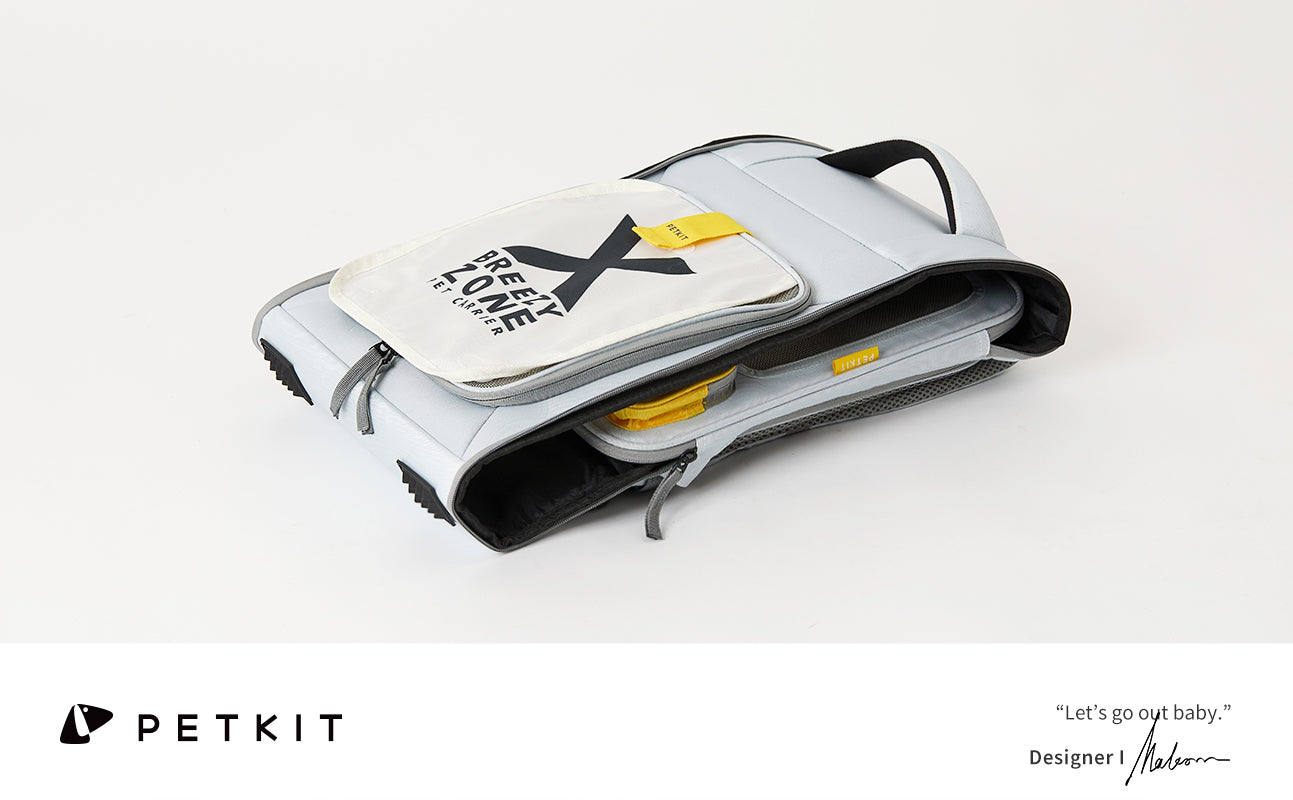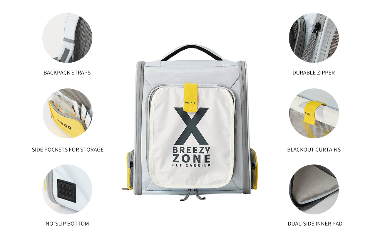 Introducing the PETKIT Breezy Zone, the perfect pet backpack for your furry friend. It's lightweight and foldable, making it easy to take on your travels. The backpack features side pockets for storage, an anti-slip bottom, blackout curtains, pressure-reducing backpack straps, dual-sided inner pads, and high-quality zippers.